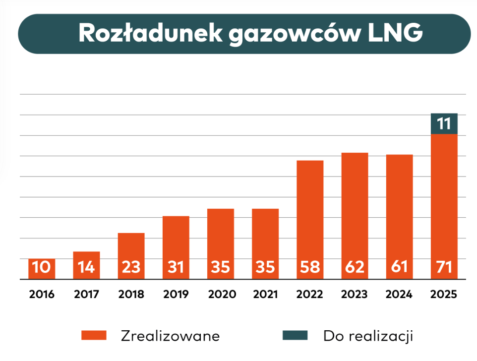 Annual number of LNG deliveries to Poland’s Świnoujście terminal, including 11 planned deliveries in 2025 (source: Gaz-System)
