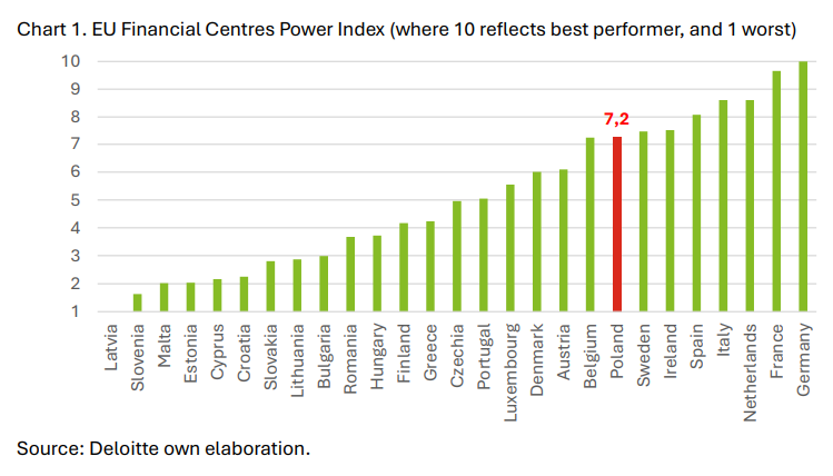 Overall, Poland ranks ninth in the EU on Deloitte’s subindex for internationalisation of financial sectors. The consultancy sees this as a positive, saying that it shows “how embedded a country is in global finance”.