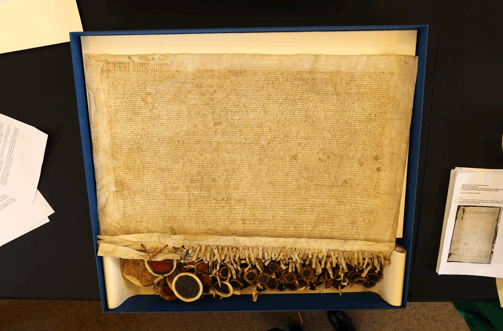 Others are signed by Polish kings, including a 1349 document in which Casimir III the Great marked the border with the Teutonic Order. Another, from 1422, is a copy of the Treaty of Melno, which ended a war the Teutonic Knights had fought against Poland and Lithuania.