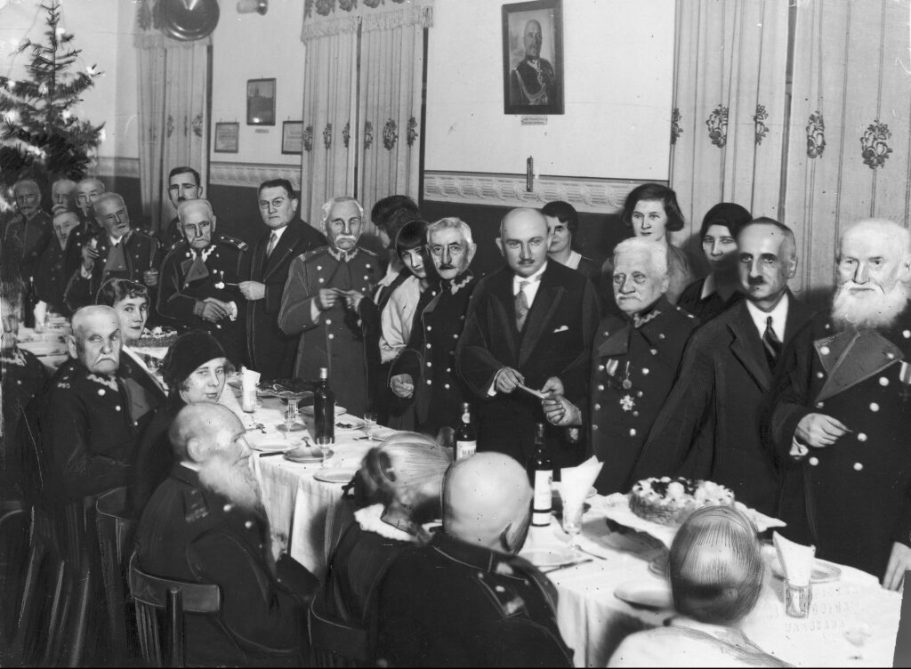 Members of the Friends of Veterans Association exchange a Christmas wafer in Warsaw, 1930 (NAC/public domain)