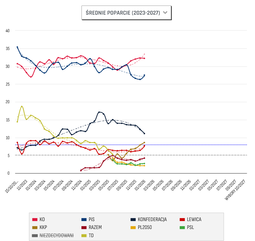 However, they decided to split last year, while both remaining part of Tusk’s ruling coalition. PSL is also polling poorly, on around 2.5%.