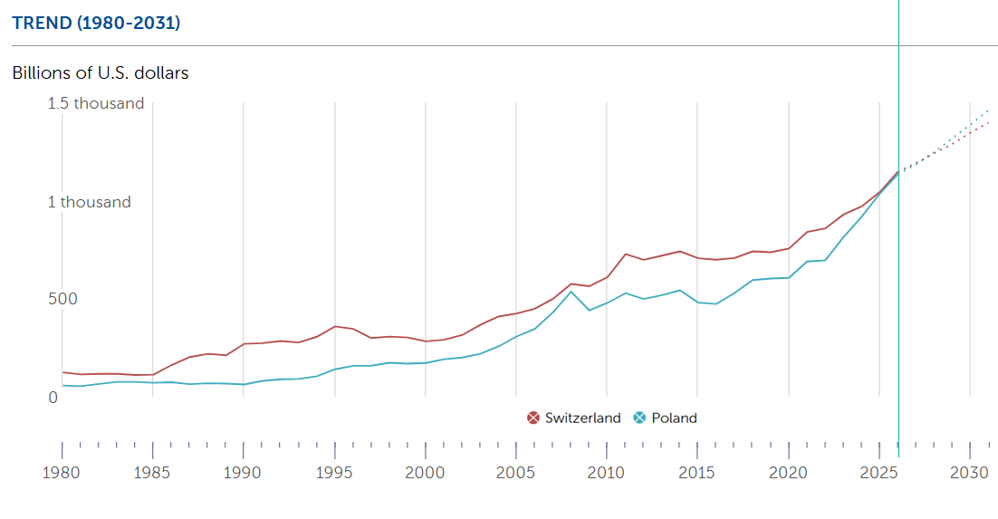 Poland and Switzerland’s GDP (source: IMF)